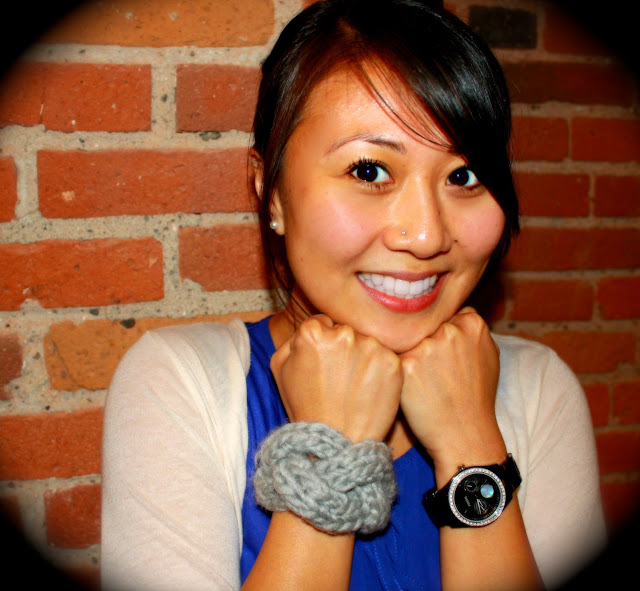 Each bracelet was made from three knitted strands (see instructions below), which we then weaved wire through and braided. Once braided, we knit the ends together into a bracelet. The wire gives the bracelet more of a solid shape so they can be worn as bangles.